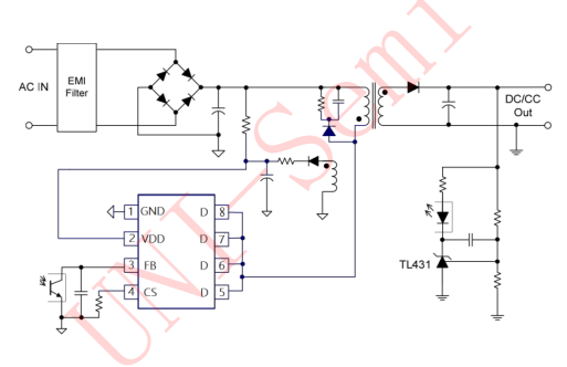 PD/QC快充芯片U6615低待机功率低功耗、低电磁兼容性和低成本。适用于12W范围内的离线反激变换器输出功率。U6615集成有多种保护功能:VDD 欠压保护 (UVLO)、VDD 过压保护 (OVP)、逐周期限流保护 (OCP)、短路保护 (SLP) 和 VDD箝位等。输出规格为5、9、12-18W,应用于PD/QC市场,VDD-40V max18W。