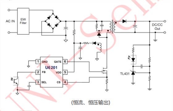 3 SEL功能复用管脚。横流恒压输出应用时,推荐连接典型值为 10-47nF 电容到 GND 管脚;恒压输出应用时,此管脚悬空。